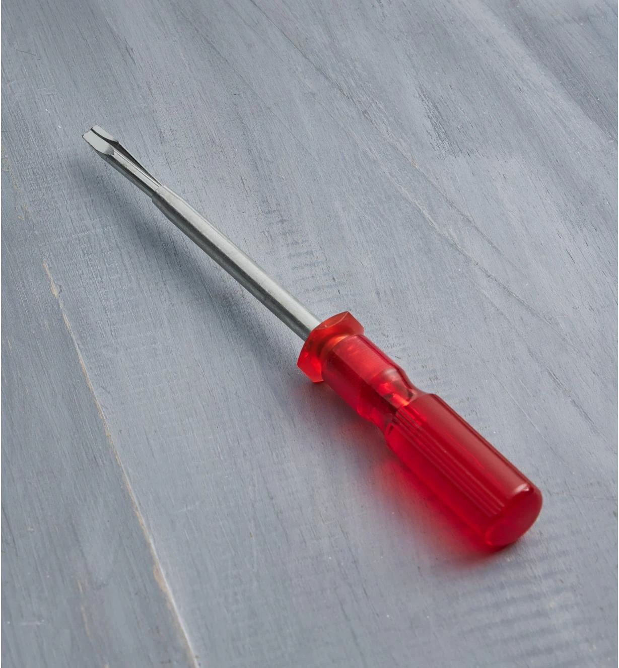The unique split-blade design of this screwdriver allows one-handed installation of slot screws. It is particularly useful for stainless-steel and brass screws (which a magnetized screwdriver will not hold).