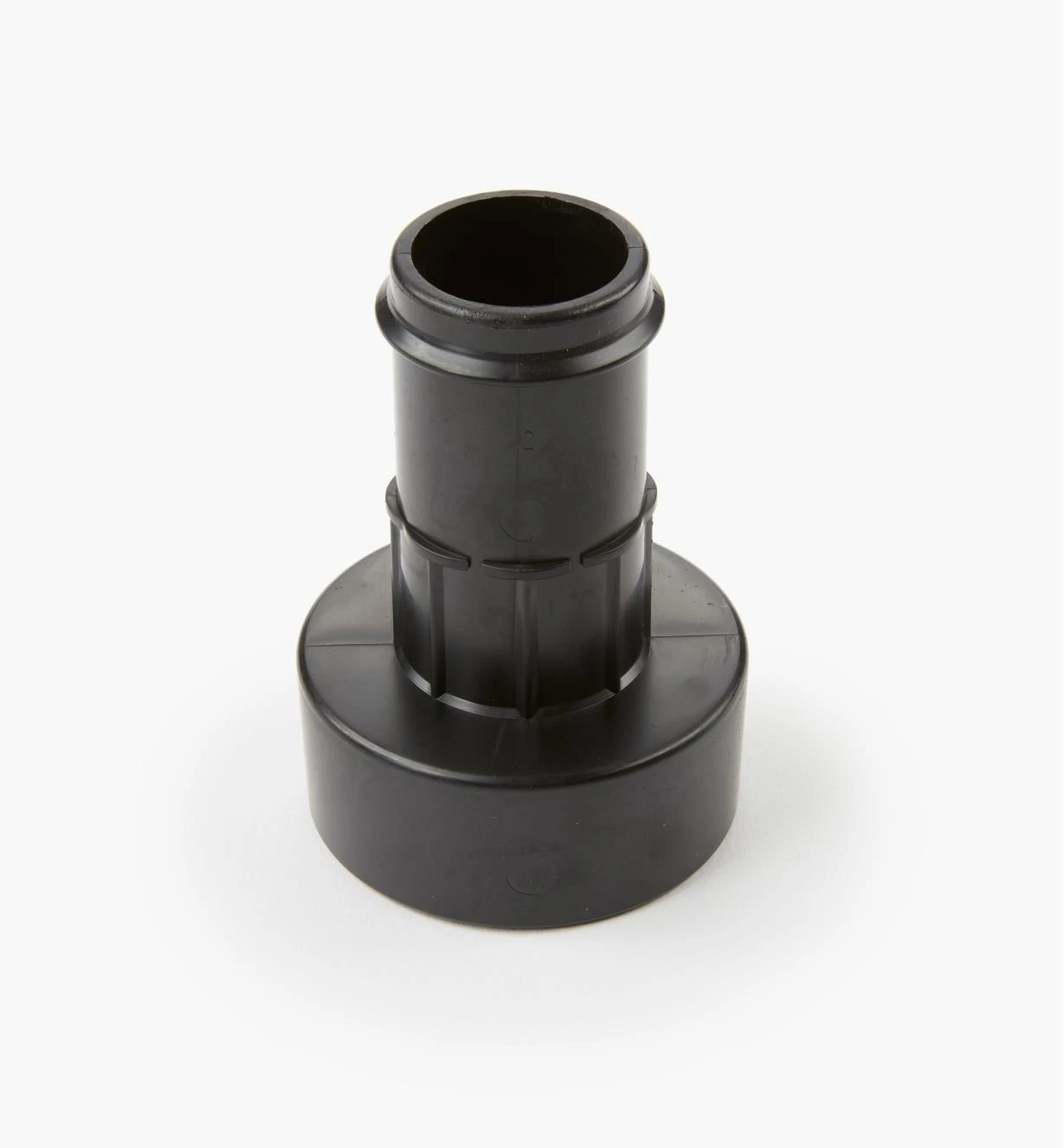 This adapter is for connection to a central vacuum system and smaller portables (the 2 1/4″ tapered outside diameter press-fits into 2 1/2″ fittings). Made of rigid ABS.