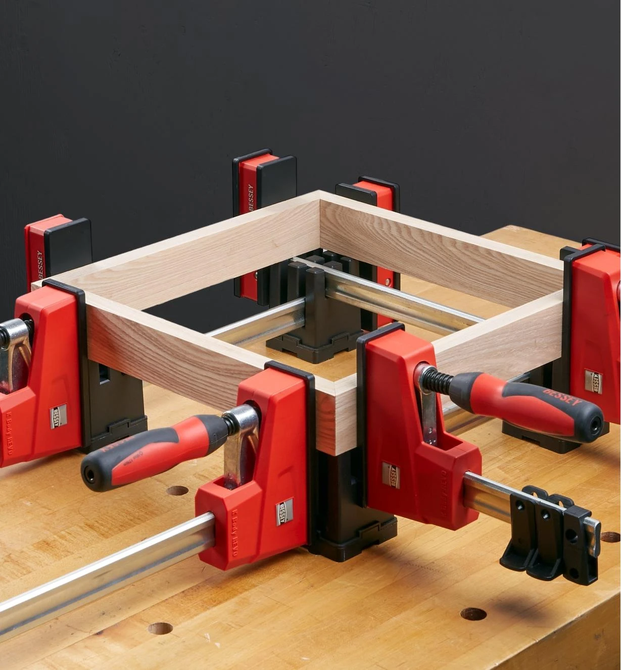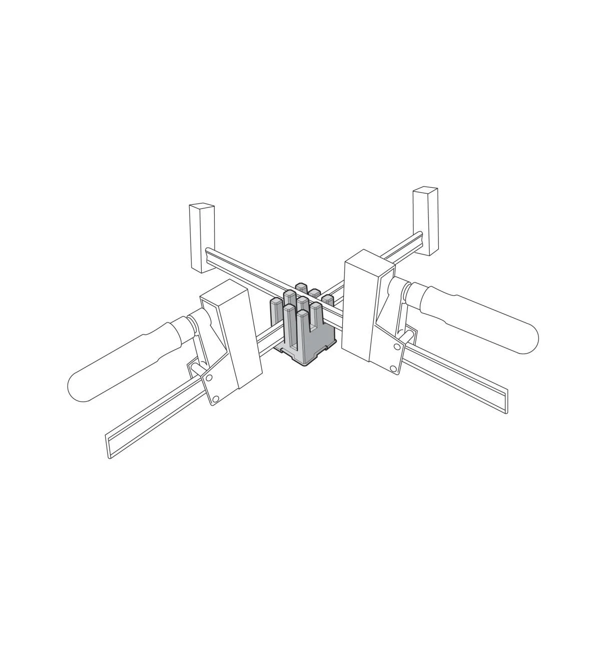 KP Blocks are the perfect accessory for four-corner framing. They hold cross-stacked clamps in position and provide a registration surface at each corner to support the work. Clamping force can be applied precisely so that each component is aligned at 90°. Package of four.