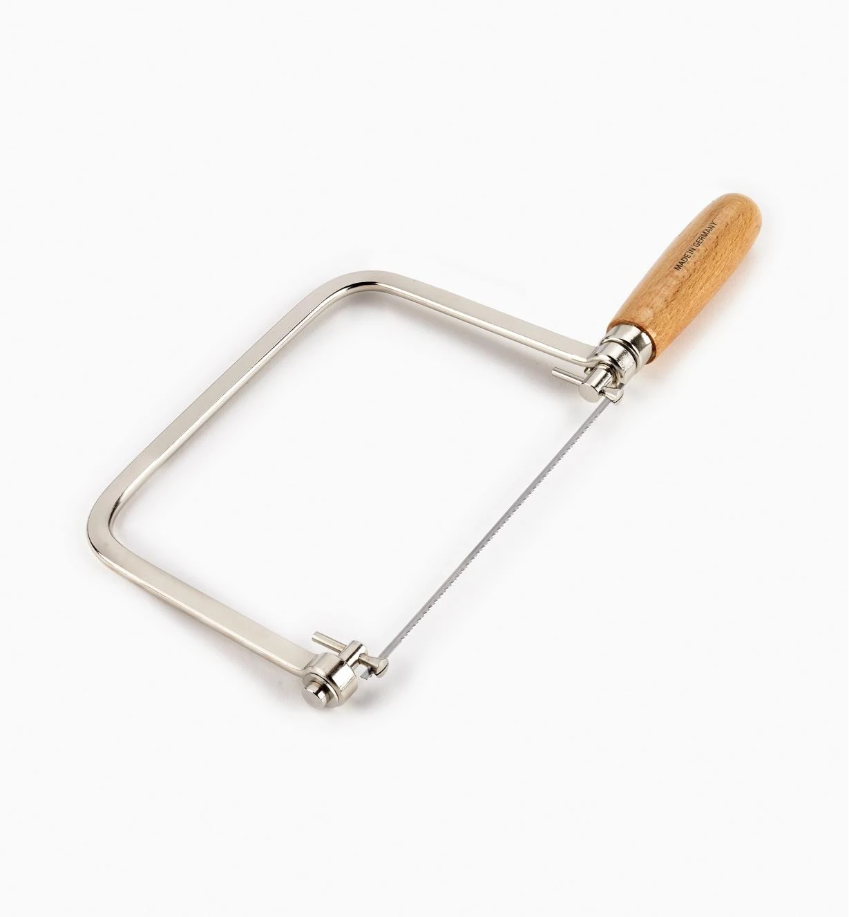 This strong, rigid, German-made saw (4 1/2″ deep frame) keeps blades well tensioned for accurate cutting and reduced blade breakage. Its high-carbon steel blade has 15 tpi for use in both hardwoods and softwoods.