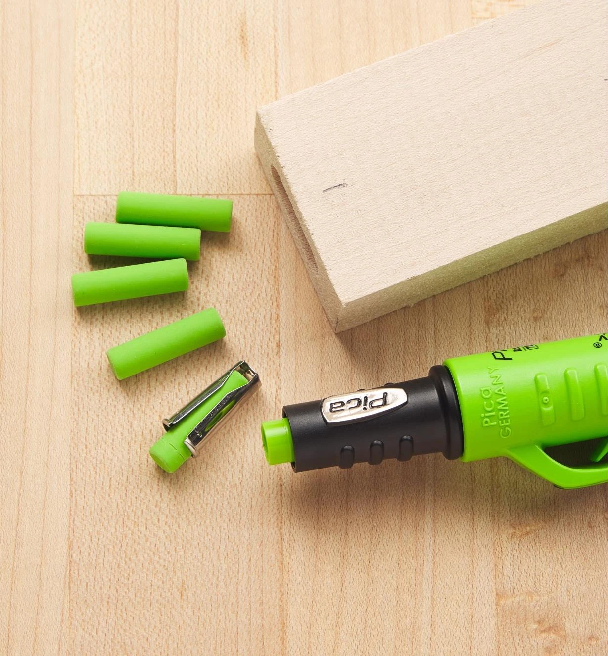 Package of five replacement erasers for use with the Pica Fine Dry 0.9mm mechanical pencil.