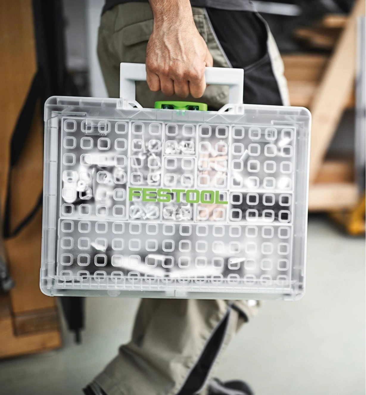 Organizer units can be connected to each other and to other Systainer units. The front carrying handle allows ergonomic carrying close to the body.