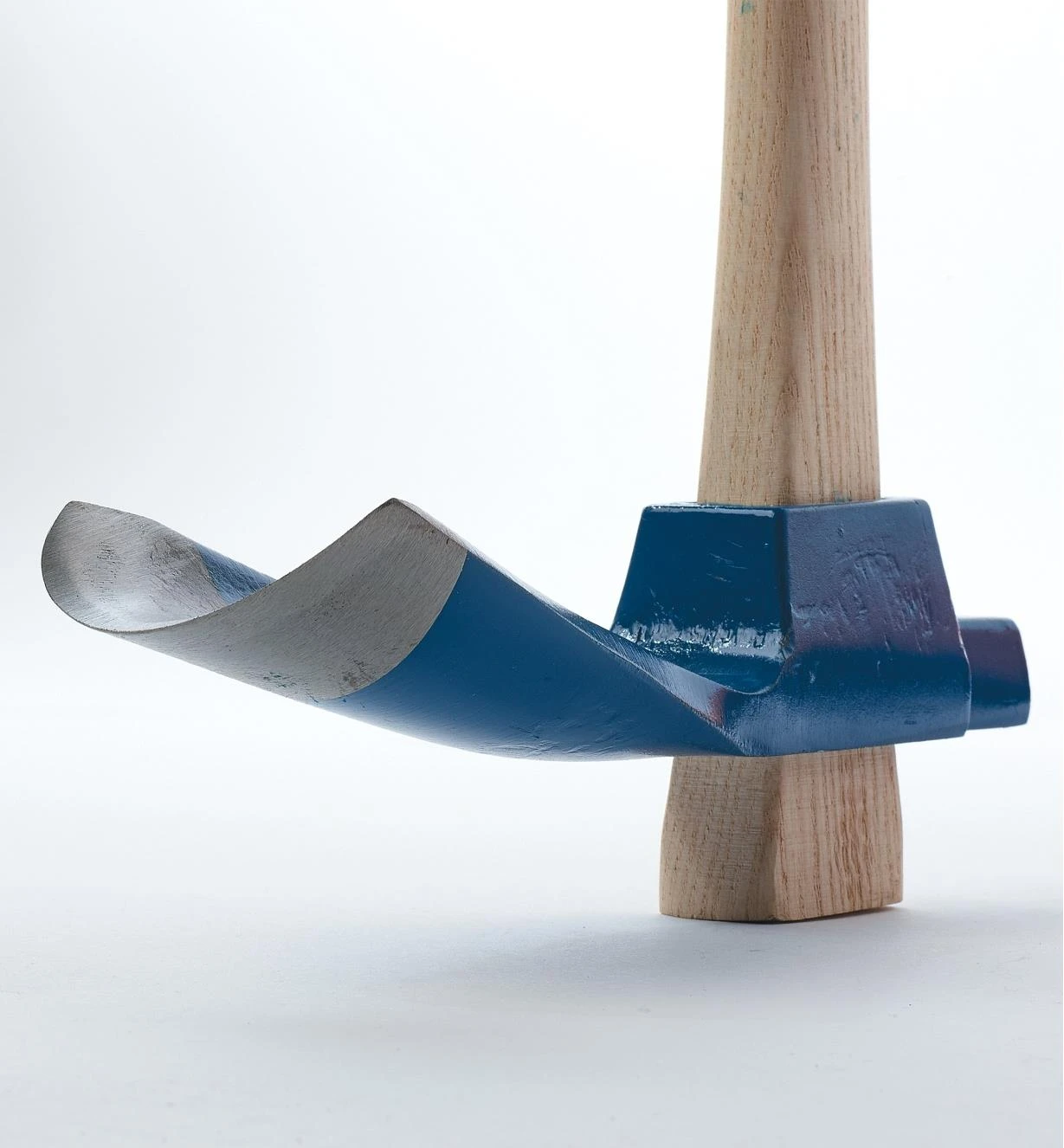 Known as a gutter adze (from the days when rain gutters were made from solid wood), this adze has a double-curved head — a 2 3/4″ diameter curvature on a head gently curved fore to aft.