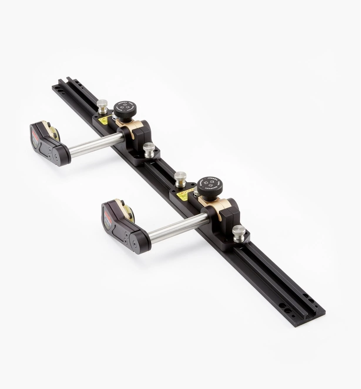 Largely made from anodized aluminum and stainless steel, the guides have excellent fit and finish. Mounting screws, a drill bit for pilot holes, a T-25 Torx driver and a 1/8″ hex key are included. An effective way to greatly improve stock control.