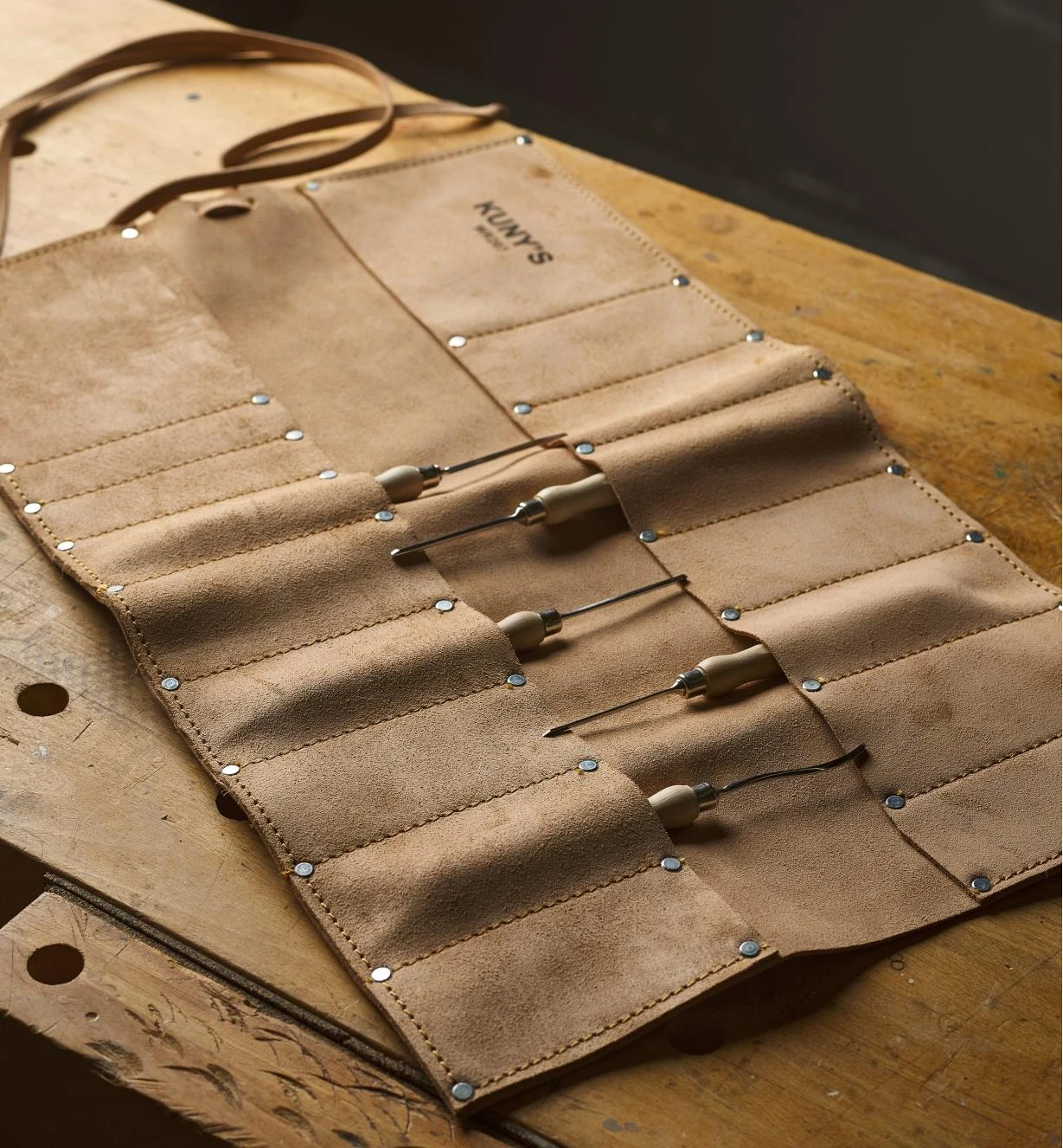 Exceptionally durable, this tool roll is made from sturdy split leather.