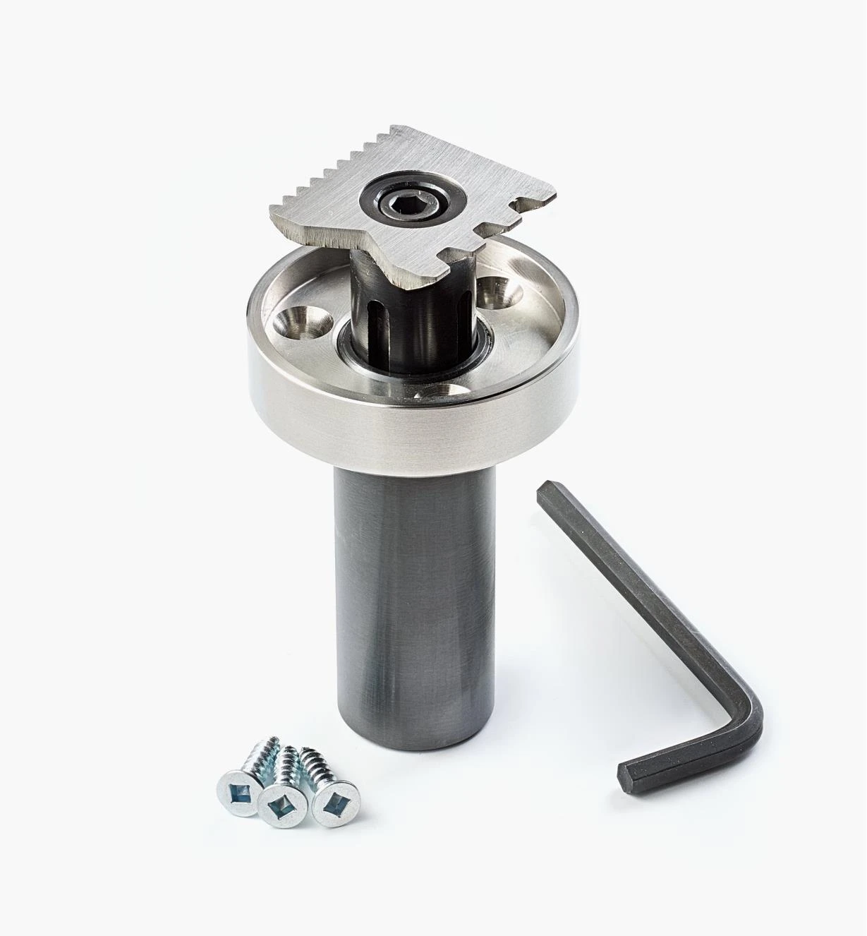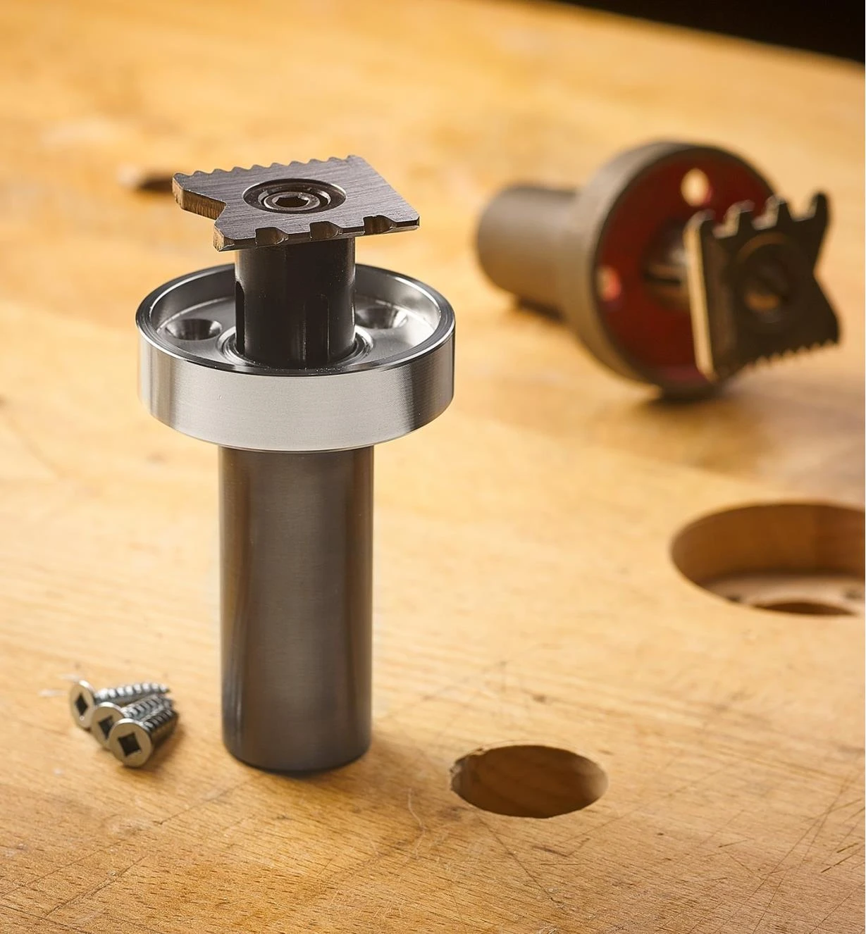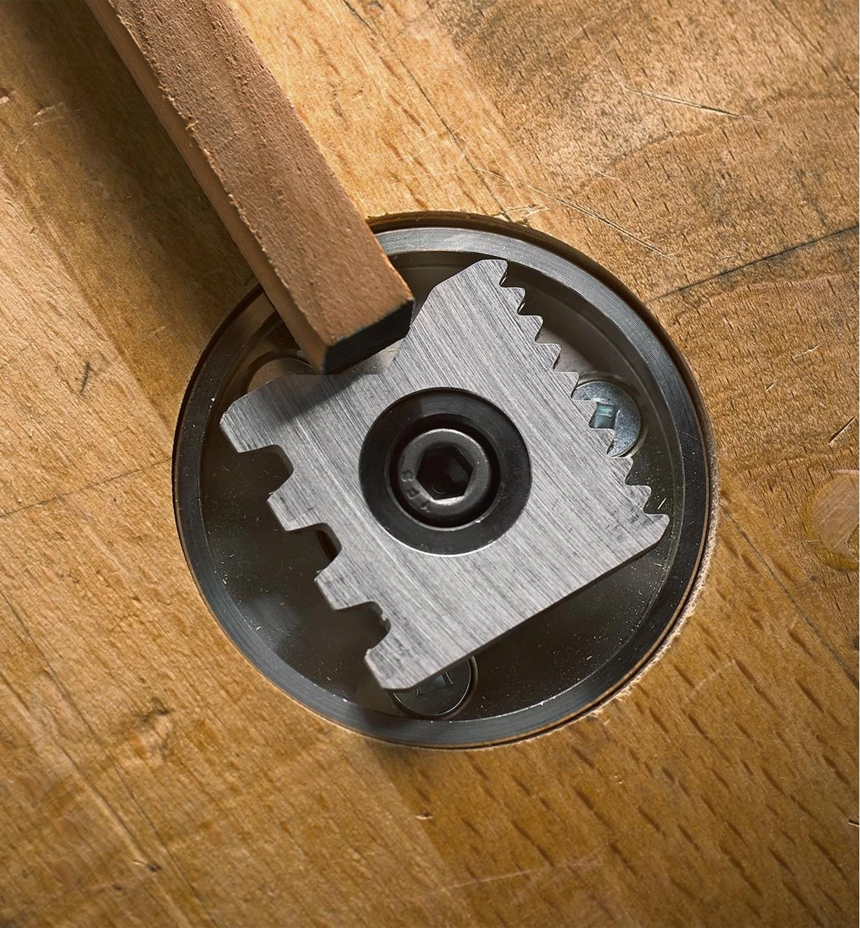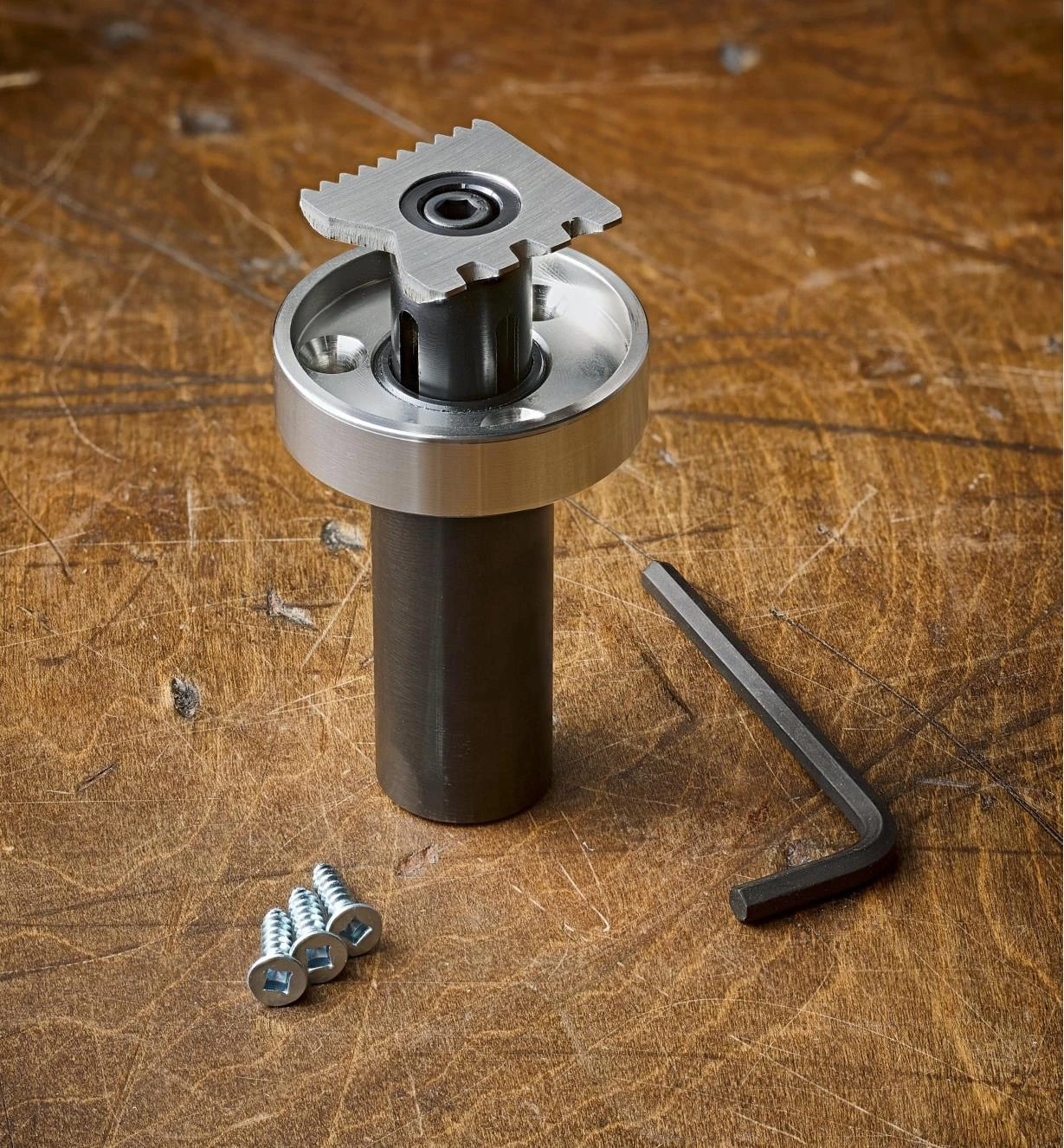 Inspired by the Millers Falls #56 Bench Hook, the Lee Valley Replica Recessed Bench Stop is a simple retrofit to any bench at least 1″ thick. Mounting is as simple as drilling a 2″ diameter hole for the cup and a concentric 1″ diameter hole for the shaft, and securing the stop in place with three screws.