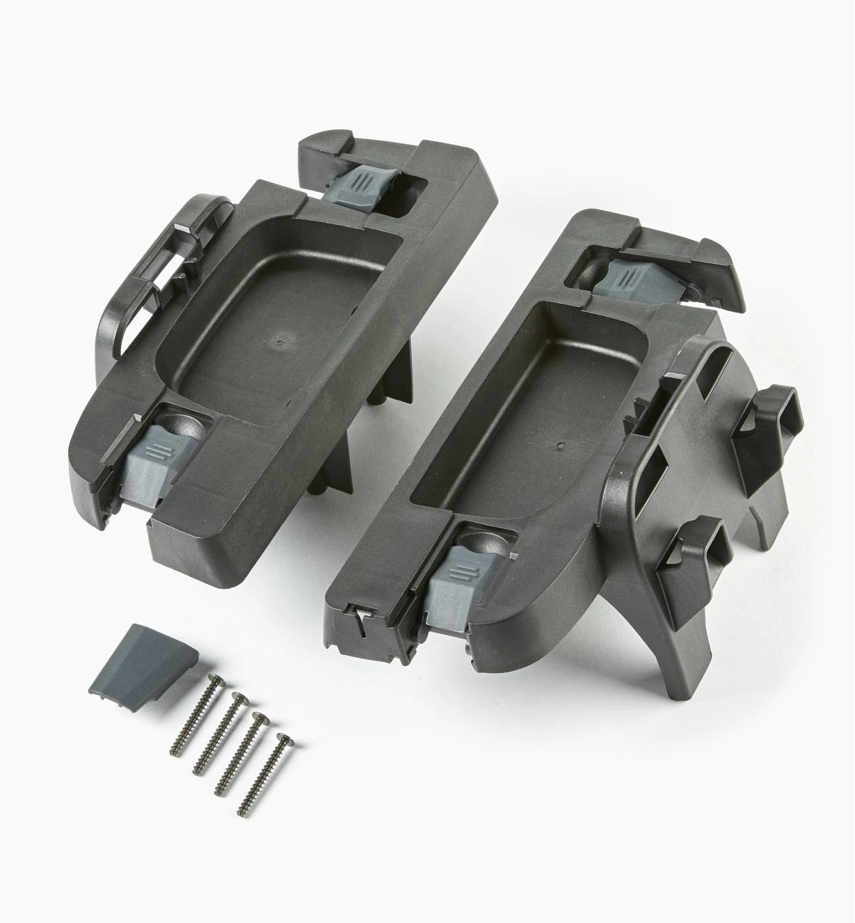 These brackets and fasteners are used to mount Systainer tool cases for Mirka sanders on top of the Mirka dust extractor 1230 HEPA for secure onboard storage.