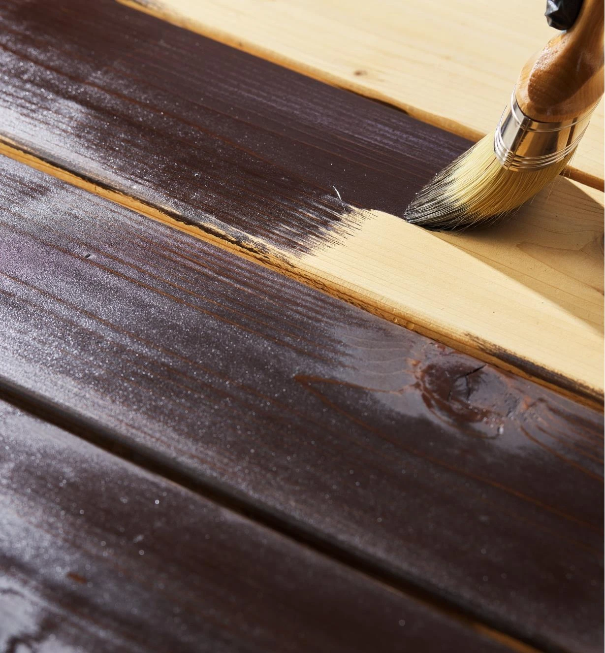 When applied thinly and evenly, it seeps into wood grain and pores, creating a barrier between the wood and the elements, letting the wood breathe to prevent cracking, peeling or flaking, and reducing the risk of swelling and shrinkage. It effectively colors the wood while allowing its character and grain to show through. A second coat applied after the first has dried deepens the color. Based on vegetable oils (sunflower, soybean and thistle) and a proprietary blend of other ingredients including mineral pigments and low-odor spirit (benzene-free), it has a low environmental impact.