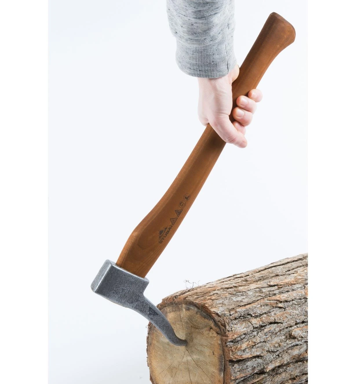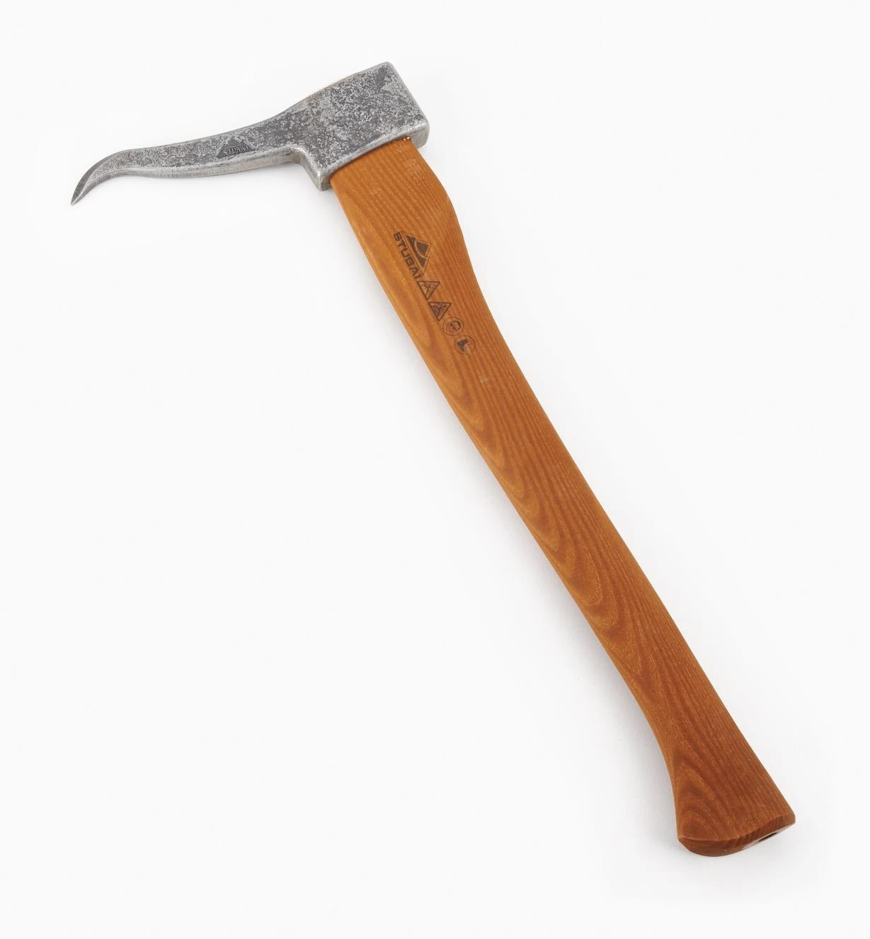 The sharp tip on the forged steel head beds well in wood with only a light swing. 18″ handle; weighs under 2 lb.