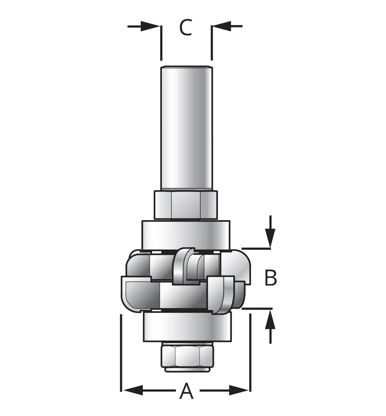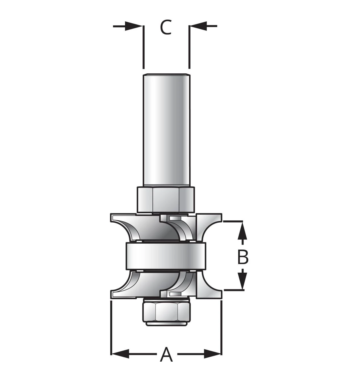 The piloted bits come with shims to accommodate variations in nominal 3/4″ material. Body diameter is 1 1/4” and depth is 0.690” to 0.790”. 1/2″ shank.