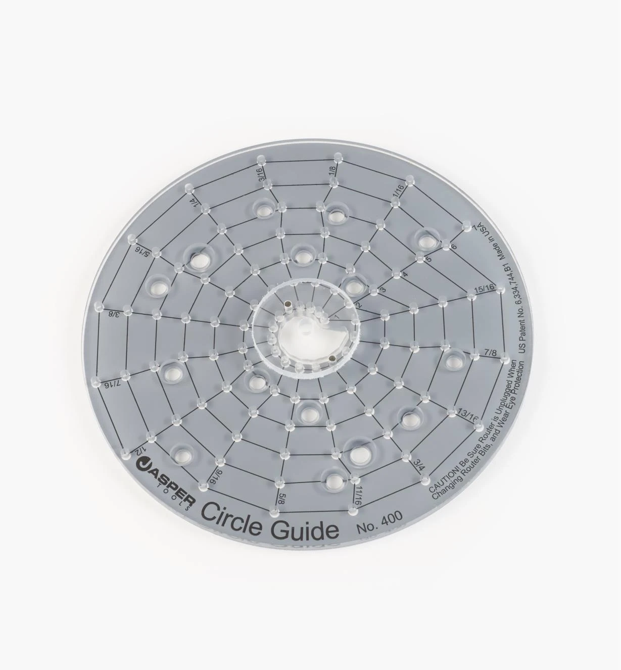 With a radial pattern of 105 precision pivot holes, this innovative jig is ideal for accurately routing cut-outs, radii and mortises.