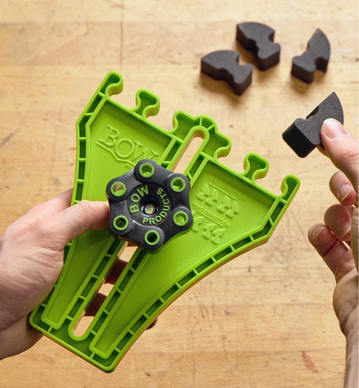 Package of four high-density EVA foam replacement feather inserts for fence and portable saw featherboards.