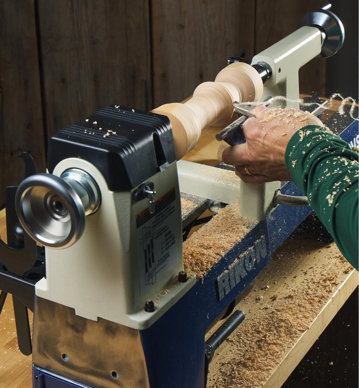 Made from substantial iron castings, it weighs 95 lb, giving it the mass needed to dampen vibration, yet it’s easy to move around the workshop. It has impressive stock-holding capacity, both in swing (12″) and distance between centers (16 1/2″); for larger work, it permits outboard turning, and can be used with an optional bed extension, sold separately.