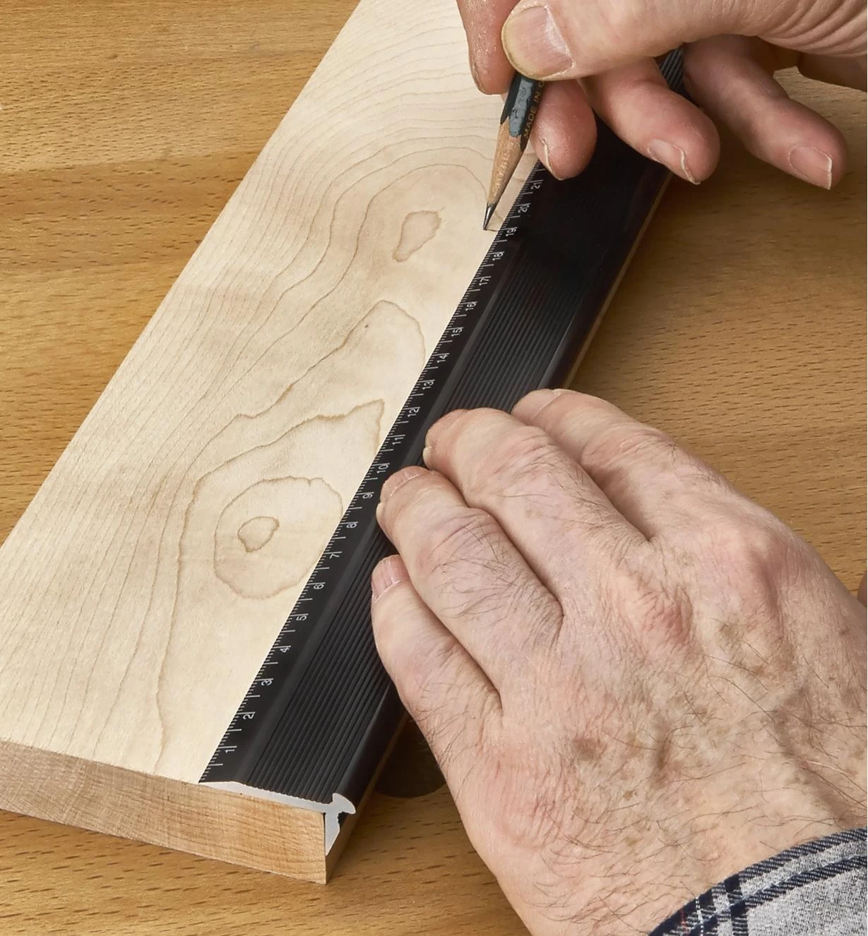 The great advantage of this style of rule is that it saddles the edge of a workpiece, making it easy to hold accurately in position when measuring and marking layout lines.
