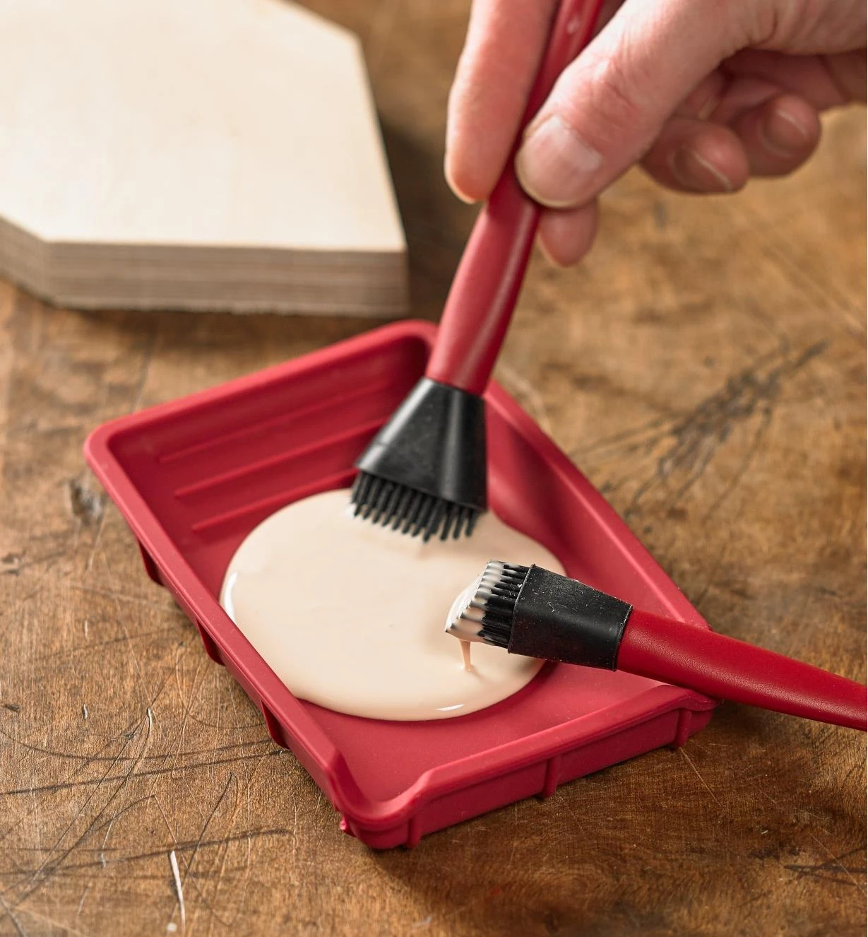 These practical tools make dispensing, applying and cleaning up glue easier. For use with polyurethanes, epoxies and water-based adhesives such as PVAs and animal glues, the set includes a compact tray, two sizes of good-quality brushes and a versatile spreader. Nearly all components are made of durable silicone, so you can simply peel off any dried glue for quick and easy clean-ups.