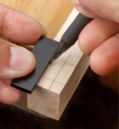 Just as a speed square is an essential layout tool for carpenters and framers, this tiny square is similar in both form and function but is appropriately sized for laying out joinery on small-scale projects.