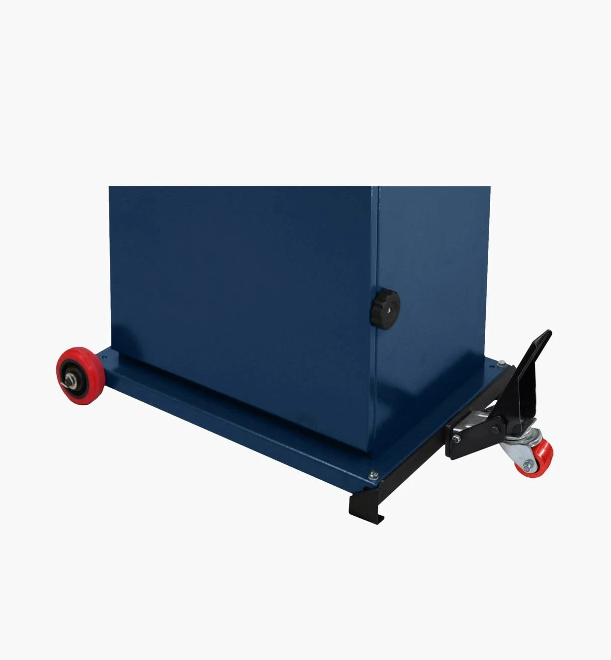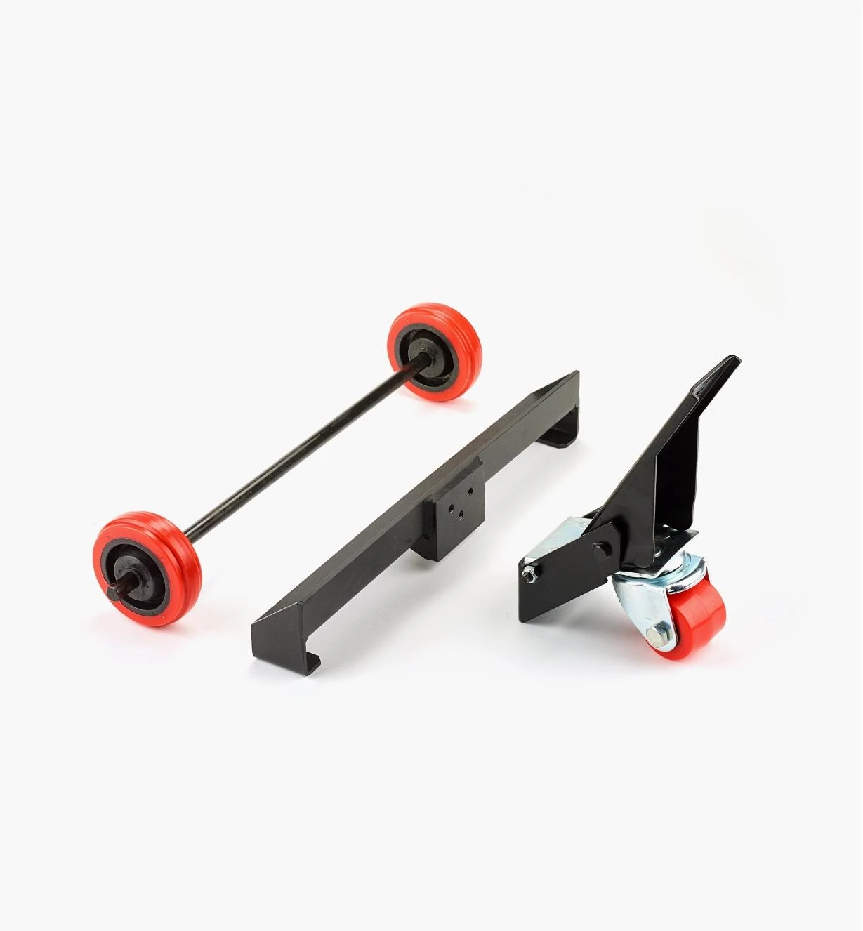 This optional wheeled bracket set is for moving the Rikon 14” deluxe bandsaw. Its foot pedal raises the stationary feet, placing the saw’s weight on the wheels so you can easily roll it out of the way.