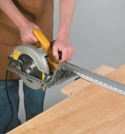 An easy retrofit to the clamp jaws, the wide jaws for the low-profile tool guides are pre-drilled for a wooden fence that locates the saw blade or router bit relative to the guide to eliminate guesswork during set-up.